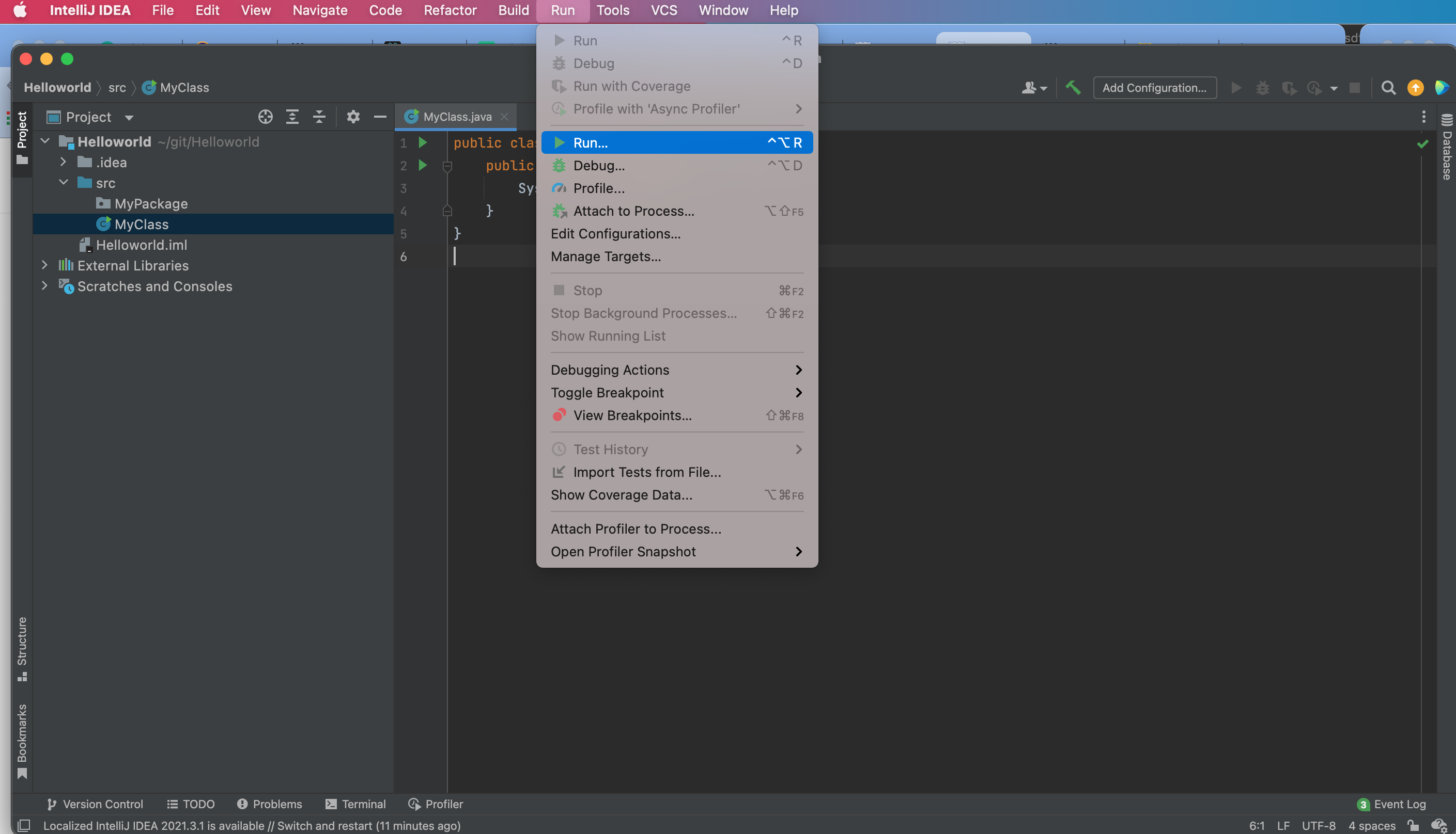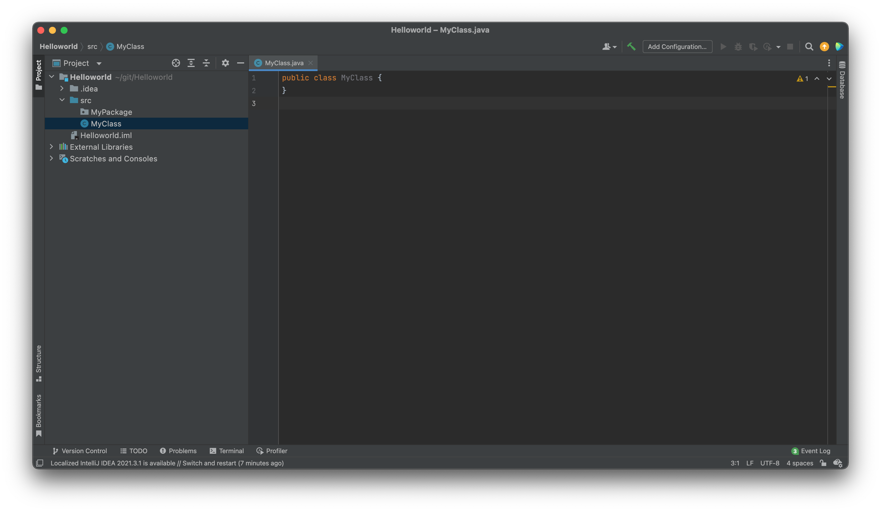 src 폴더 우클릭 -> New -> Java Class -> Class 명 입력 후 Class 더블 클릭