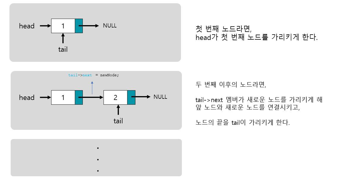 tail 에서 추가되는 연결리스트