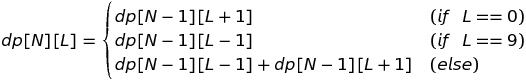 // dp[N][L] : N자리 계단수에 대해, 끝자리가 L인 수의 개수