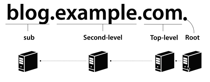 각각의 레벨을 담당하는 네임서버가 있으며, 각 서버는 바로 하위 레벨 도메인에 대한 네임서버 주소 밖에 알지 못한다.