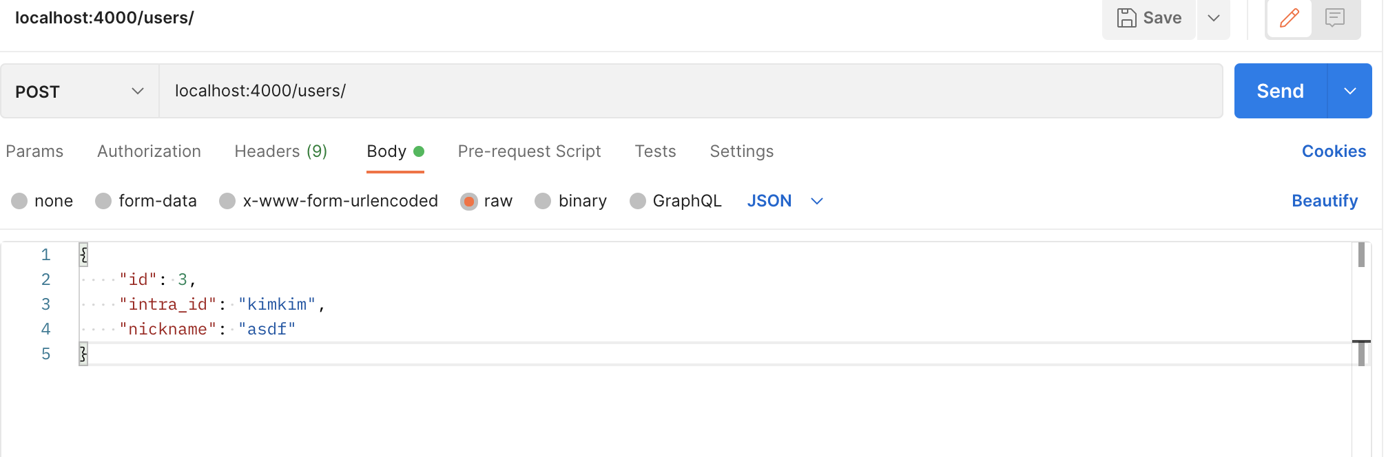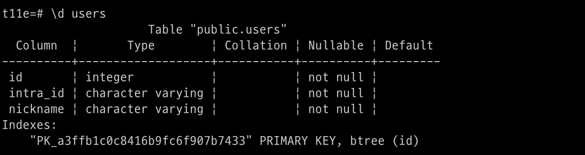 일단 id, intra_id, nickname 컬럼만 추가해봤다.